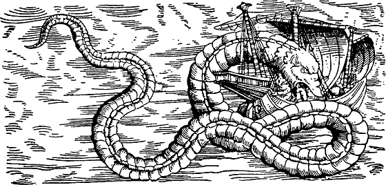 Кит-змея по описанию Олауса Магнуса (Геснер, 1598).