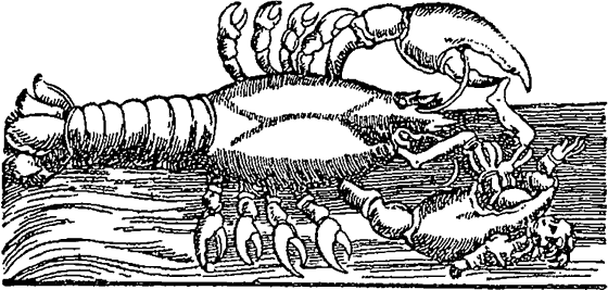 «Морской волк», рак-великан, схвативший человека (Альдрованди, 1606).