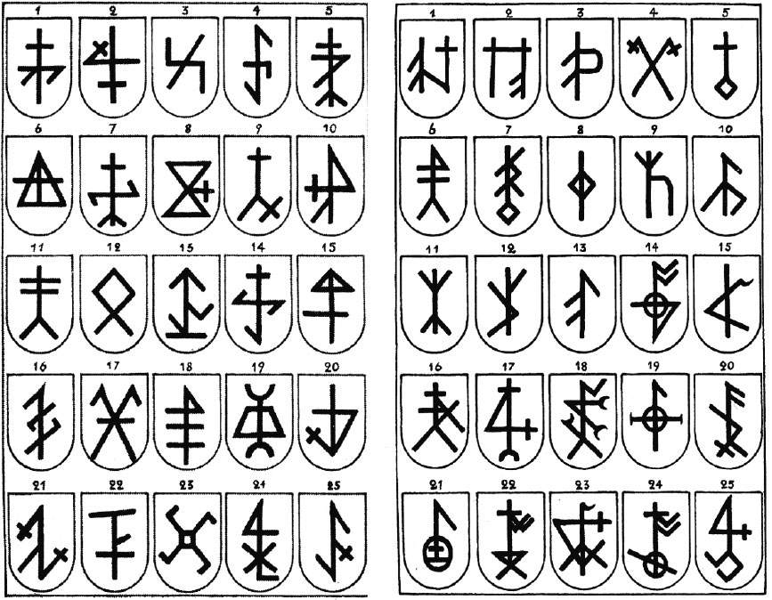 Одна из таблиц родовых символов древних германских родов.