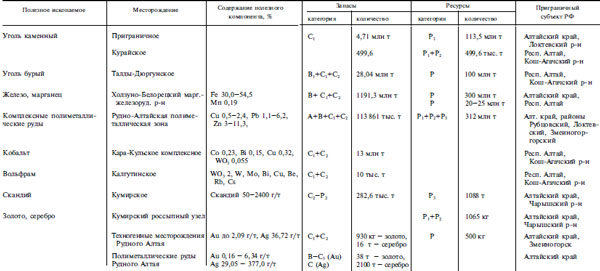 Территория Алтайского приграничья неоднородна по геологическому строению и металлогенической специализации. Равнинные территории Кулундинской впадины являются областями континентального содонакопления. Металлогеническая специализация горных территорий определяется как рудная полиметаллическая (Рудный Алтай), редкометалльная золото-серебряная и железо-марганцевая (Горный Алтай). Основные сведения о минерально-ресурсном потенциале приграничья представлены в табл. 5.2.