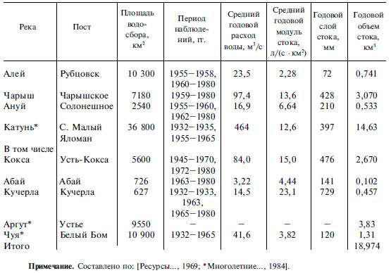 Таблица 5.6 Водные ресурсы основных рек [Кулундинская., 1972]