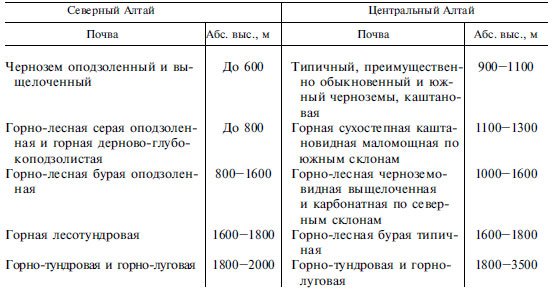Таблица 5.7 Основные типы почв и их высотная приуроченность [Почвы…, 1973]