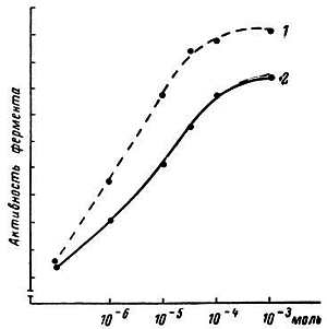 5. Важный молекулярный приспособительный механизм — явление генетической индукции. Смысл ее состоит в том, что, когда в клетке начинают накапливаться те или иные вещества, усиленно синтезируются ферменты их расщепления. Подобный эффект вызывает и ряд гормонов. Этот усиленный синтез ферментов связан с включением регуляторных механизмов, стимулирующих активность определенных генов. Благодаря генетической индукции клетка приспосабливается к условиям существования. При старении сильно изменяется генетическая индукция ферментов. Как видно на рис. 11, рост активности ферментов в ответ на различные дозы гормона в печени взрослых и старых крыс неодинаков.