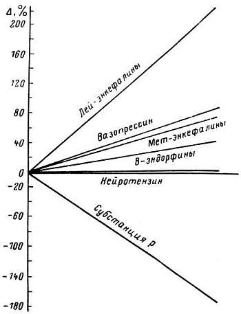 В деятельности мозга, в реакции организма большое значение имеют вещества, названные нейропептидами. Они существенно отличаются по химической природе, не обладают общим свойством — модулировать, регулировать течение процессов в мозге. Многие из них влияют на формирование ощущения боли, поведение, течение стресса и др.