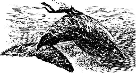 — Пока находишься впереди финвала, — говорит Делуар, — бояться нечего. Вообще в передней части туловища нет ничего страшного. А прошла мимо половина туловища, — тут самое время подумать об осторожности, вспомнить, что под водой ты вовсе не такой поворотливый, как на суше. И уж как завидишь извивающийся хвост, эту махинищу, — лучше посторониться. Не то он обрушится на тебя, словно тонна кирпича.