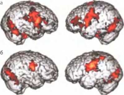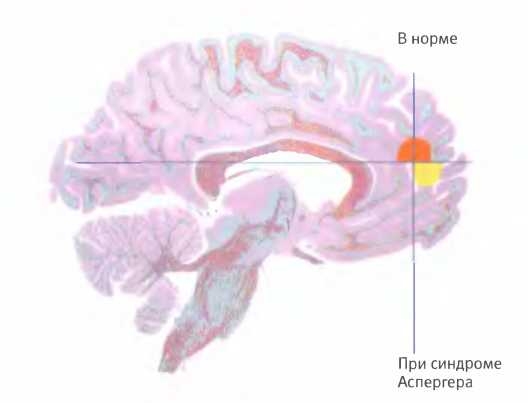 В ходе второго исследования выяснилось, что причина отсутствия этих навыков при аутизме может быть связана с тем, что ключевой участок мозга, необходимый для их работы, у аутистов не включается. Это исследование было аналогично предыдущему, но испытуемыми были пациенты, страдающие синдромом Аспергера. При этом синдроме у людей наблюдаются характерные черты аутизма в сочетании с нормальным или высоким коэффициентом интеллекта. Как и можно было ожидать, этим испытуемым потребовалось больше времени, чтобы ответить на вопрос, который требовал понять, что было у вора на уме, но рано или поздно им все-таки удавалось ответить. Однако характер активности мозга, которая у них наблюдалась, разительно отличался от характера активности, отмеченной в мозге здоровых испытуемых. Зона префронтальной коры, активировавшаяся в предыдущем исследовании, здесь вообще не активировалась. Вместо этого возбуждался другой участок мозга, расположенный непосредственно под ней. Из полученных ранее результатов уже было известно, что этот участок связан с общими когнитивными способностями11.