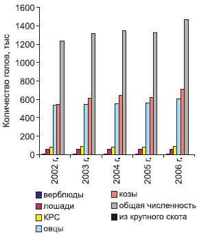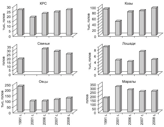 Рис. 11.7. Поголовье скота во всех категориях хозяйств Кош-Агачского района Республики Алтай.