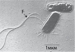 Рис. 26. Электронная микрофотография бактерии Escherichia coli – возможно, наиболее изученного микроорганизма в биологии. Она находится в кишечнике человека, однако патогенные штаммы (с виду идентичные непатогенным) зачастую вызывают у людей пищевые отравления. Эти организмы имеют жгутики, позволяющие им плавать в жидкой среде