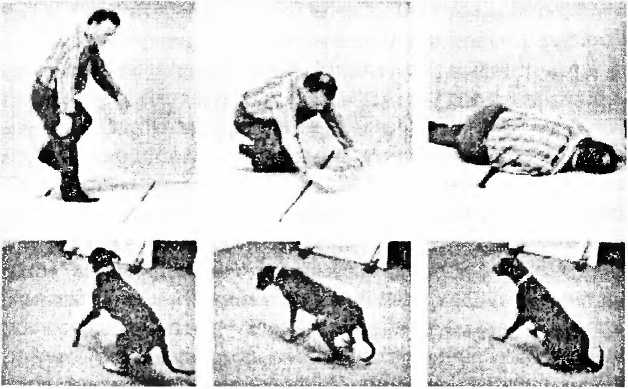 Рис. 18. Нарколепсия — расстройство сна, когда больные в течение дня постоянно ощущают сонливость, а ночью сон часто прерывается. При эмоциональном переживании, смехе или испуге, у больных нарколепсией может наступить внезапное расслабление мышц рук и ног, и они падают на пол. Кажется, что они потеряли сознание, но это не так (верхнее фото). Это называется катаплексией и происходит из-за исчезновения в гипоталамусе химического трансмиттера гипокретина (или орексина). Нарколепсия с катаплексией может возникнуть также из-за того, что мозг оказывается нечувствительным к гипокретину. Это произошло с огромным доберман-пинчером. Когда пес увидел мясные консервы, которые ему принесли и до которых он был большой охотник, он был вне себя от радости, у него подкосились сначала задние лапы, потом передние, и он уснул, упав на бок (S. Overeem et a Lancet Neurol. I, 437–444, 2002).
