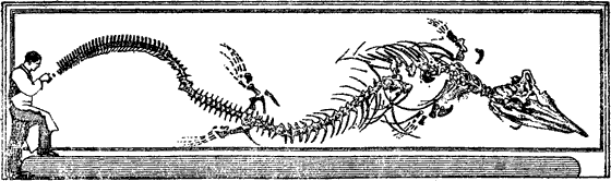 Этот бедняга увяз, повидимому, так глубоко в топкой глине океанского дна, что даже газы, образовавшиеся в его желудке, не могли поднять на поверхность тело; его длина — свыше пяти метров. Другой экземпляр был отослан в Британский музей естественной истории в Лондоне. Третий находится в Мюнхене (Бавария), а четвертый — в Рэмеровском музее (Гильдесгейм в Германии).