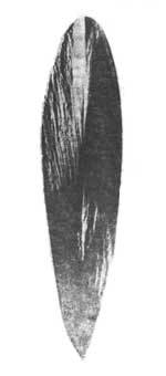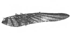 Летательный аппарат семян тропической лианы представляет собой планер типа «летающее крыло», то есть планер без хвостового оперения. В последующие годы (1904—1909) Этрих строил планеры только этого типа, которые в точности копировали свой оригинал (фото 41), Самый первый из них имел размах крыльев 6 метров и мог нести 25 килограммов полезной нагрузки (фото 42). Второй планер имел размах крыльев уже 10 метров, но, как и первый, представлял собой беспилотный летательный аппарат, который поднимал в воздух 70 килограммов полезного груза. Дальность его полета достигала 300 метров. В 1906 году Иго Этрих построил аналогичную модель, на которой совершил полет уже человек. В 1909 году на планере был установлен двигатель мощностью 40 лошадиных сил. Трудности полета аппарата с двигателем и с человеком на борту создавались неточностью его центровки, от чего и зависела устойчивость аппарата в полете. Что касается семени лианы, то здесь подобных проблем не возникает, поскольку центр тяжести семени не перемещается. Любое же изменение позы человека влечет за собой перемещение и центра тяжести. По этой причине на следующей модели планера Этриха был установлен стабилизатор, форму которого позаимствовали у голубя. В мае 1910 года новый летательный аппарат успешно поднялся в воздух. Его прототипом было летучее семя тропической лианы.