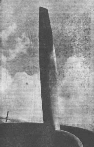 Фото 46. На снимке — лопасть воздушного винта спортивного самолета. Верхний и нижний концы ее несколько развернуты относительно оси винта.