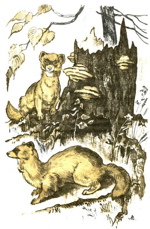 Но и от колонка кое-кому достается: он не упустит возможности поймать и задавить солонгоя, ласку или горностая, съесть их или припрятать в свои кладовые. Вот и выходит, нет мирного времени в жизни зверька: то его караулят, то он.
