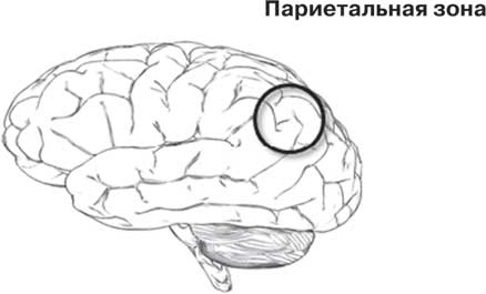 Это звучит довольно забавно, но иногда эту зону называют «шишкой математиков». Говоря научным языком, можно предположить, что нейроны этой части мозга кодируют понятия количества (много, мало, чуть-чуть, еще меньше и так далее), представляемые числами. Пациенты, у которых эта зона, к примеру, была повреждена вследствие инсульта, не могут произвести простейшие математические действия. Я вспоминаю об одном таком пациенте с повреждением париетальной зоны, который на вопрос «Сколько получится, если от шести отнять три» ответил: «Семь».