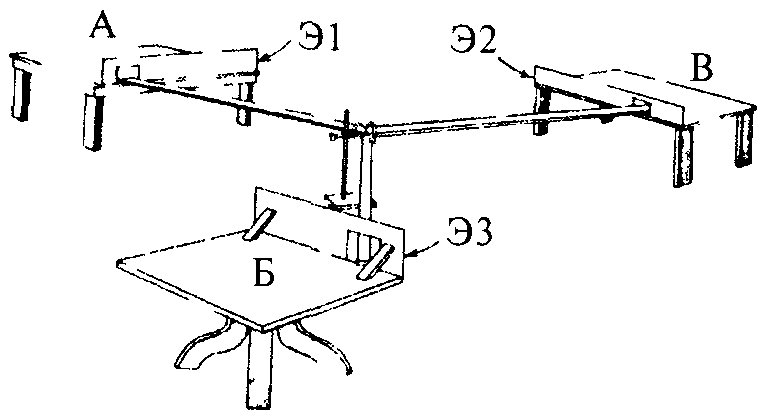 Использованная в этих опытах установка состоит из трех дорожек (длиной 244 см каждая), расходящихся из одной центральной точки. Каждая дорожка заканчивается столиком, отличающимся от остальных по размеру, форме и типу. На столиках установлены деревянные экраны (Э1, Э2, ЭЗ) таким образом, чтобы с одного столика нельзя было видеть, что делается на остальных. После того как крыса обследовала все столики и дорожки, ей давали пищу, например на столике А. Затем крысу помещали на один из двух других столиков, например В, и отпускали. Достигнув центра установки, крыса могла выбрать один из двух путей — на столик А (где ее раньше кормили) или на столик Б. Перед каждым тестом животному давали возможность осмотреть установку. Всякий раз крысу кормили на другом столике. При случайном выборе доля правильных решений равна 50 %, однако у некоторых крыс она была гораздо выше. Это позволило автору сделать следующий вывод.