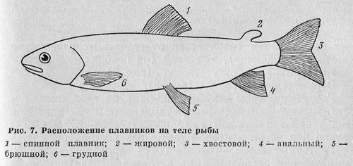 Жировой плавник — плавник, лишенный каких бы то ни было лучей. Расположен на спине между спинным и хвостовым плавниками (рис. 7).