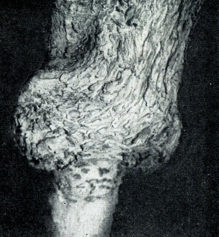 Наплыв в месте прививки из-за несоответствия тканей привоя (сирень персидская) и подвоя (сирень венгерская)