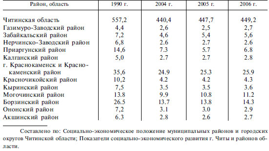 Таблица 14.5 Численность пенсионеров в муниципальных образованиях Читинской области в 2003– 2006 гг. в среднем на 1000 чел. населения