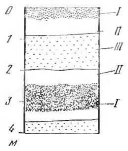 Следует различать также былые водоносные горизонты в которых подземные воды отсутствуют, но существовали в прошлом и оставили следы в виде ожелезнения, оглеения, карбонатизации, огипсования и т. д. (рис. 18). Изучая подобные горизонты, можно восстановить химический состав и другие особенности былых подземных вод, т. е. решать задачи палеогидрогеологии и палеогидрогеохимии. Но, пожалуй, еще важнее практическая сторона вопроса — к современным и былым водоносным горизонтам приурочены рудные тела месторождений полезных ископаемых, которые образовались на участках резкого изменения состава вод — так называемых геохимических барьерах. Таковы, например, «медистые песчаники», давно известные в науке о рудных месторождениях.