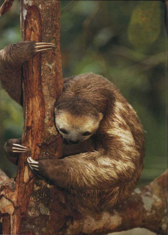 Ленивцы — совершенно необычные млекопитающие, они живут высоко в тропических лесах и питаются преимущественно листьями. Желудок ленивцев разделен на два отдела, как у жвачных, так что листья тщательно перевариваются. Значительную часть своей жизни ленивец проводит во сне на ветвях деревьев, а бодрствуя, он висит вниз головой, медленно передвигаясь с ветки на ветку. Температура его тела может опускаться до 24° по Цельсию (75° по Фаренгейту), мало кто может вынести такую температуру из других млекопитающих.