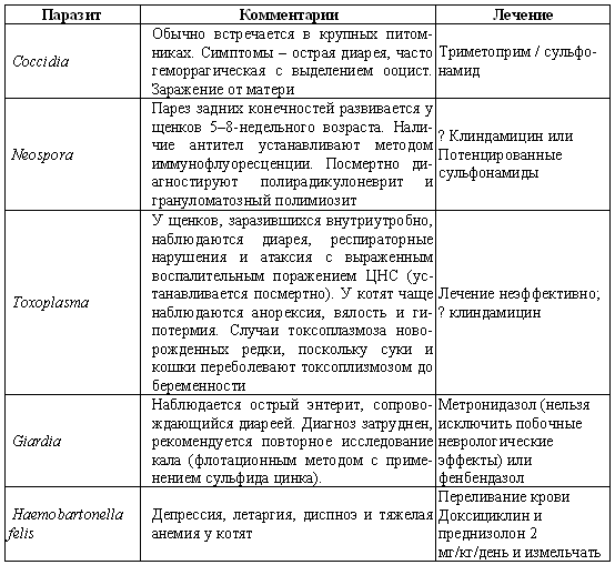 Табл. 14.7. Протозойные паразиты, поражающие щенков и котят