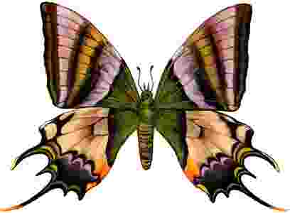Теперь перейдем к красочному миру тропических бабочек. Начнем с парусников, родственных тем, что обитают в российском Приморье. Еще лет 60 назад эти тропические парусники порхали над домами Рио-де-Жанейро. Теперь из-за задымления их можно встретить лишь в 150–200 км от гигантского города. Птицекрыл королевы Александры по размаху крыльев (18 см) действительно сравним с птицей. Эта бабочка обитает на Новой Гвинее. Столь же велик и парусник Гомера с острова Ямайка. Парадиза не случайно так названа (ведь парадиз в переводе означает «рай»): ее окраска поражает воображение. Она тоже из Юго-Восточной Азии.