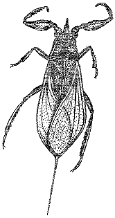 Плавающие в воде клопы. Представитель этой группы — клоп-гладыш (рис. 28). Голова гладыша треугольной формы, что вообще характерно для клопов; на голове большие красноватые глаза. Такие глаза позволяют гладышу хорошо видеть любое движение, как в воде, так и на ее поверхности. Следует обратить внимание на хоботок насекомого: на конце хоботка подвижные колющие стилеты, этими стилетами клоп пронзает не только покровы жертвы, но и кожу человека. При укусе в тело жертвы (и ткани руки также) попадает ядовитая слюна, способствующая растворению тканей жертвы (у человека эта жидкость вызывает сильную боль и жжение на месте укуса).