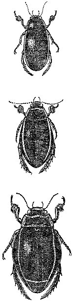 Рис. 33. Плавунцы: окаймленный, цибистер, широкий (сверху вниз)