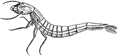 Рис. 26. Личинка поденки из быстро текущих водоемов