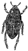 Жук-водолюб — самый крупный жук Европы (длиной до 5 см). Отделы тела его пригнаны друг к другу не так хорошо и плотно, как у плавунцов и цибистеров. У самца на передней паре ног треугольные выросты с присосками. Нижняя сторона жука кажется серебристо-белой из-за прослойки воздуха, удерживаемой густыми волосками. На брюшке и снизу среднегруди расположены дыхальца. Приближаясь к поверхности, водолюб выставляет вперед сяжок, так что один из члеников соприкасается с поверхностью и тут же образует воздушный канал от атмосферы к прослойке на нижней стороне тела, по которому и идет обновление воздуха (рис. 35).