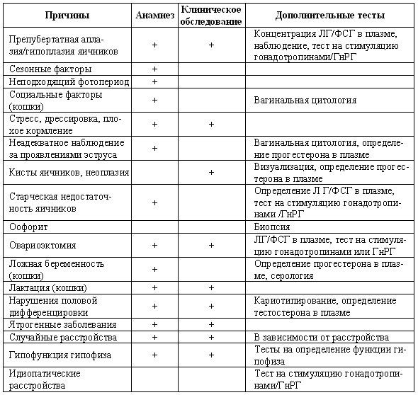 Табл. 3.2. Диагностика нарушений, характеризующихся отсутствием признаков эструса