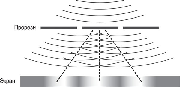 Пожалуй, самой яркой демонстрацией странностей квантового мира может служить эксперимент, который был проведен в начале 1800?х годов Томасом Юнгом с целью доказательства волновой природы света. Для этого луч света направлялся через пару узких прорезей и затем попадал на экран, установленный на некотором отдалении. Вместо того чтобы высветиться на экране в виде двух ярких полос, он образовывал последовательность расплывчатых светлых и темных участков.