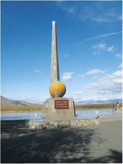 Какой-то англичанин определил, что географический (или геометрический) центр Азии находится в верховьях Енисея. Когда урянхайцы (теперь они называются тувинцами) запросились под покровительство России, освободившись от власти китайцев и не желав входить в состав Монголии, был основан город Белоцарск. Белоцарском город назывался недолго, в 1923 году под новым названием Кызыл («Красный») он стал столицей полунезависимой республики Танну-Тува. Позднее в Кызыле, на берегу Енисея, соорудили обелиск, в основании которого написали: «ЦЕНТР АЗИИ» (рис. 1)
