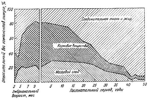 Рис. 7.12. Возрастные изменения компонентов тимуса человека [9]