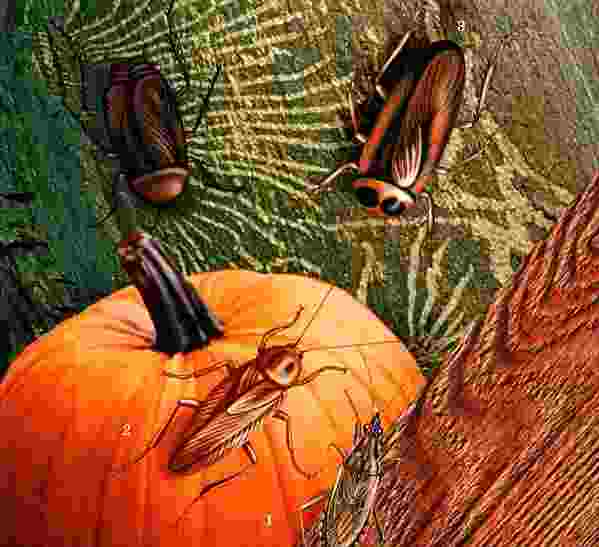 1 — клоп-хищнец, 2 — таракан рыжий, 3 — тропический таракан, 4 — черный таракан