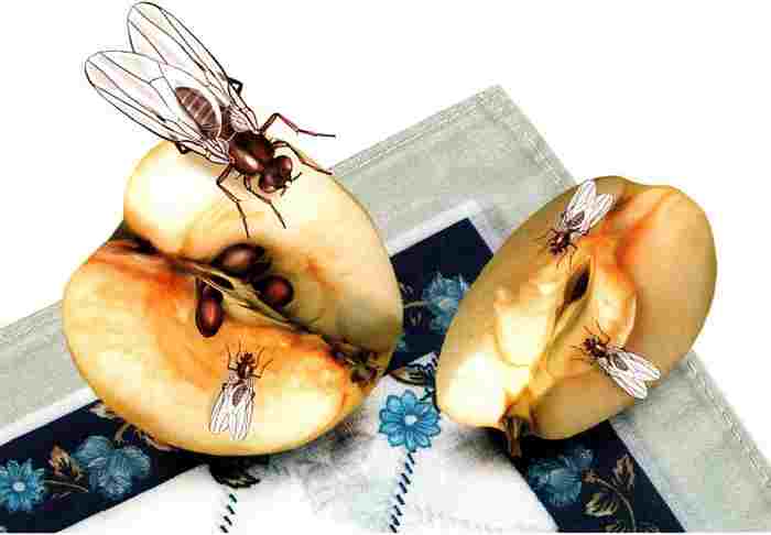 Когда дома начинают портиться фрукты или овощи, появляются крохотные (размах крыльев не более 3 мм) черные мушки, чьи личинки развиваются на гниющих плодах, на остатках пищи. Это дрозофилы — те самые, на которых генетики проводят свои опыты. Для генетиков эти мушки незаменимы, поскольку быстро размножаются и поколения их следуют одно за другим через 7-10 дней. Среди их родственников есть переносчики болезней, вредители продуктов. Но плодовые дрозофилы безобидны, для человека они не опасны.