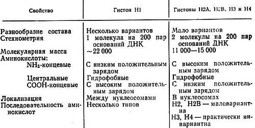 Таблица 2.2. Сравнение свойств гистона Н1 и нуклеосомных гистонов
