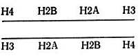Сердцевина нуклеосомы содержит по две молекулы каждого из Н2А-, Н2В-, Н3- и Н4-гистонов, которые образуют октамер. Положительно заряженные вытянутые цепи этих гистонов электростатически связаны с отрицательно заряженной ДНК. Полагают, что четыре гистона расположены относительно ДНК следующим образом: