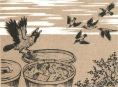 Вряд ли кто обвинит в жадности и наших серых ворон. Если одна из них обнаруживает отбросы, она начинает кричать, и со всех сторон слетаются птицы, которые еще издали сигнализируют о своем приближении.