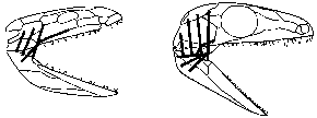 РИСУНОК 37. Расположение жевательной мускулатуры лабиринтодонта Ichthyostega (а) и примитивной капториноморфной рептилии Paleothyrus (б).