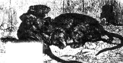 Гравюра, отображающая с большой точностью нападение более крупной норвежской крысы на черную.