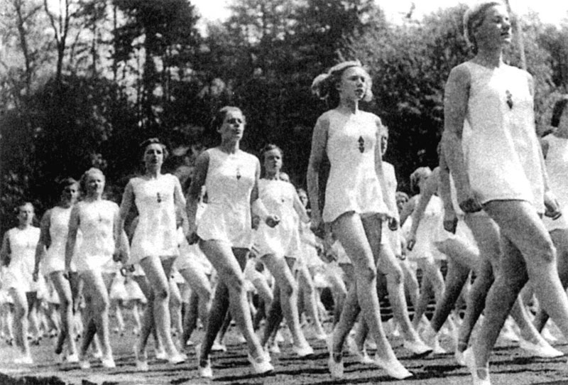 Гитлеровская Германия – это социальное общество вообще без женщин во власти, но с культом здорового тела и духа для обоих полов. Поэтому через участие в различных принудительных общегосударственных мероприятиях типа «Силы через радость», «Красоты через радость» и т. п. прошла вся молодежь нацистской Германии