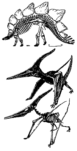Рис. 21. Скелеты Stegosaurus ungulatus Marsh (Lull, 1910) и Pleranodon ingens (колл. авторов) (внизу).