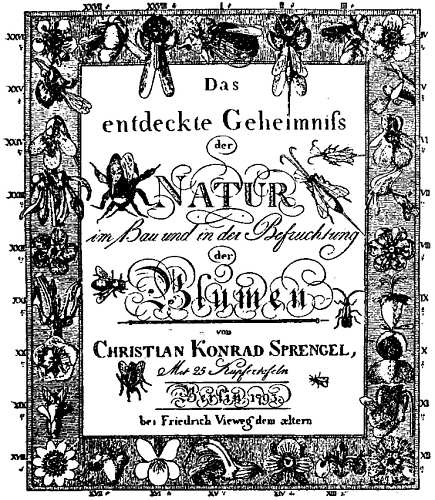Заглавный лист сочинения Христиана Конрада Шпренгеля «Раскрытая тайна природы в строении и оплодотворении цветков». Издание 1793 года. (Воспроизводится с уменьшением.)