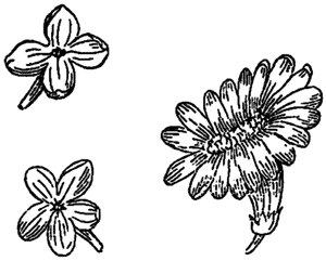 Рис. 111. Сирень. Нормальный цветок, 5-лепестковый и 18-лепестковый.