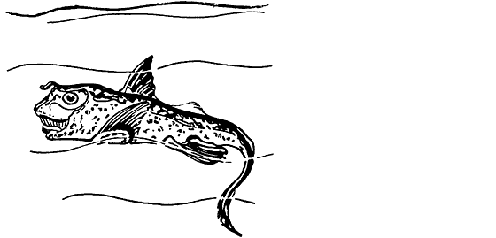 Немногим моложе акул их близкие хрящевые родственники — скаты. Они появились около 100 миллионов лет назад. Внешне большинство скатов совсем не похожи на акул. Разросшиеся в сторону грудные плавники придают им очень странный вид. Известно около пятидесяти видов различных скатов. С некоторыми из них мы уже познакомились на страницах этой книги.