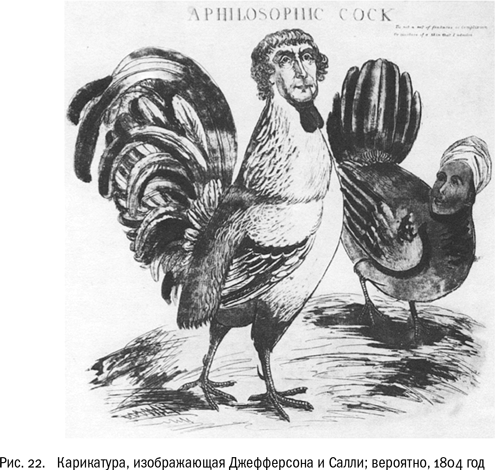 Конечно, политические оппоненты Джефферсона не могли пройти мимо этой истории. О том, что у него есть дети от рабыни, впервые написал журналист Джеймс Каллендер, обиженный на Джефферсона за отказ дать ему должность почтмейстера, в 1802 г. Просвещенные люди и тогда осуждали обычай сожительствовать с рабынями и считать родившихся детей рабами. О Томасе Джефферсоне и его “черной Сал” высказались все желающие во всех жанрах, от пафосных обличений до похабных баллад. К чести президента, это никак не отразилось на жизни Хемингсов в Монтичелло. Но, возможно, именно это навеяло ему горькие размышления о невозможности двум расам жить вместе.