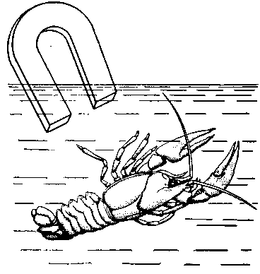 Известно, что если в это время на дно водоема, где живут раки, насыпать железные опилки, то раки могут набить ими органы равновесия. При этом легко доказать, что положение животных в пространстве регулируется положением (направлением давления) песчинок (опилок). [32] Достаточно приблизить к таким ракам магнит, и они в воде повернутся животом в его сторону, стремясь занять такое положение, чтобы в органах равновесия направление давления было нормальным.