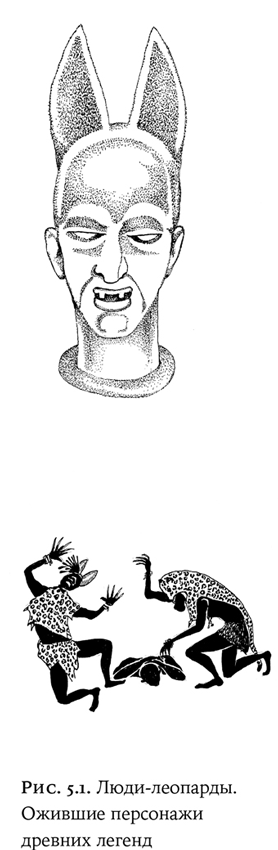 Постепенно ритм ускоряется, и участники действа впадают в транс, некое гипнотическое состояние. Они и в самом деле ощущают себя леопардами и, направляемые старейшинами ордена, ведут себя так, как, по их представлениям, поступает обычно их тотем. Только охотятся они не на антилоп, а набрасываются на отступников и предателей, приговоренных к смерти, – и разрывают их тела «когтями» и зубами! Цепь-хвост так же служит орудием убийства: