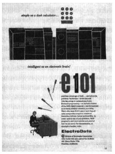 Реклама 1957 года, отражающая популярное видение компьютера как гигантского мозга.